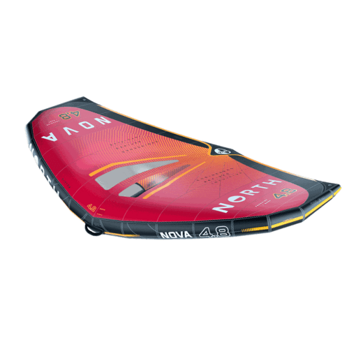 De North Nova wing 6.2 rood 2025 versie nova wing. Hij kenmerkt zich een bijzonder stijf frame, wat zorgt voor een direkt vaargevoel. De wing hecft 1 lange giek(handel)